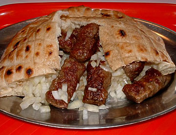 CEVAPISmall grilled rolls of minced meat ( beef and lamb). Usually served on the plate or in "lepinja" (pita bread) in Serbia with chopped onions |