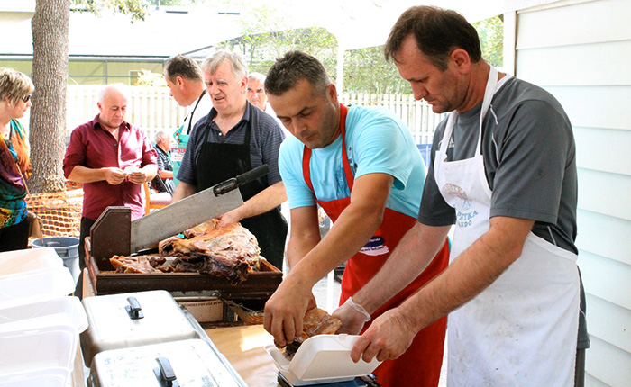 PECENJEOpen air roasted piglet or lamb, prepared by Serbian men. |